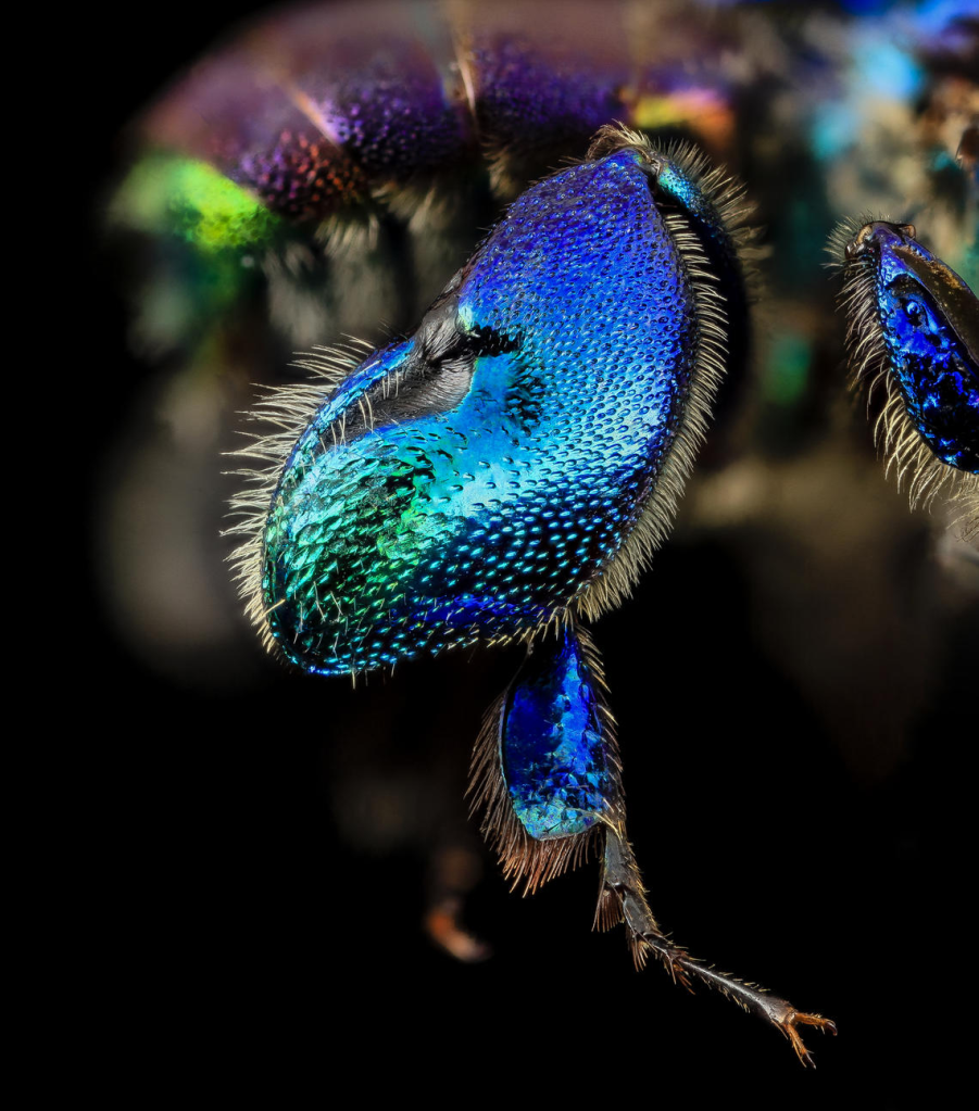 Euglossa sp. orchid bee hind leg, Guyana (USGSBIML Team. Public domain. https://www.usgs.gov/media/images/orchid-bee-green-butt-m-leg-guyana)