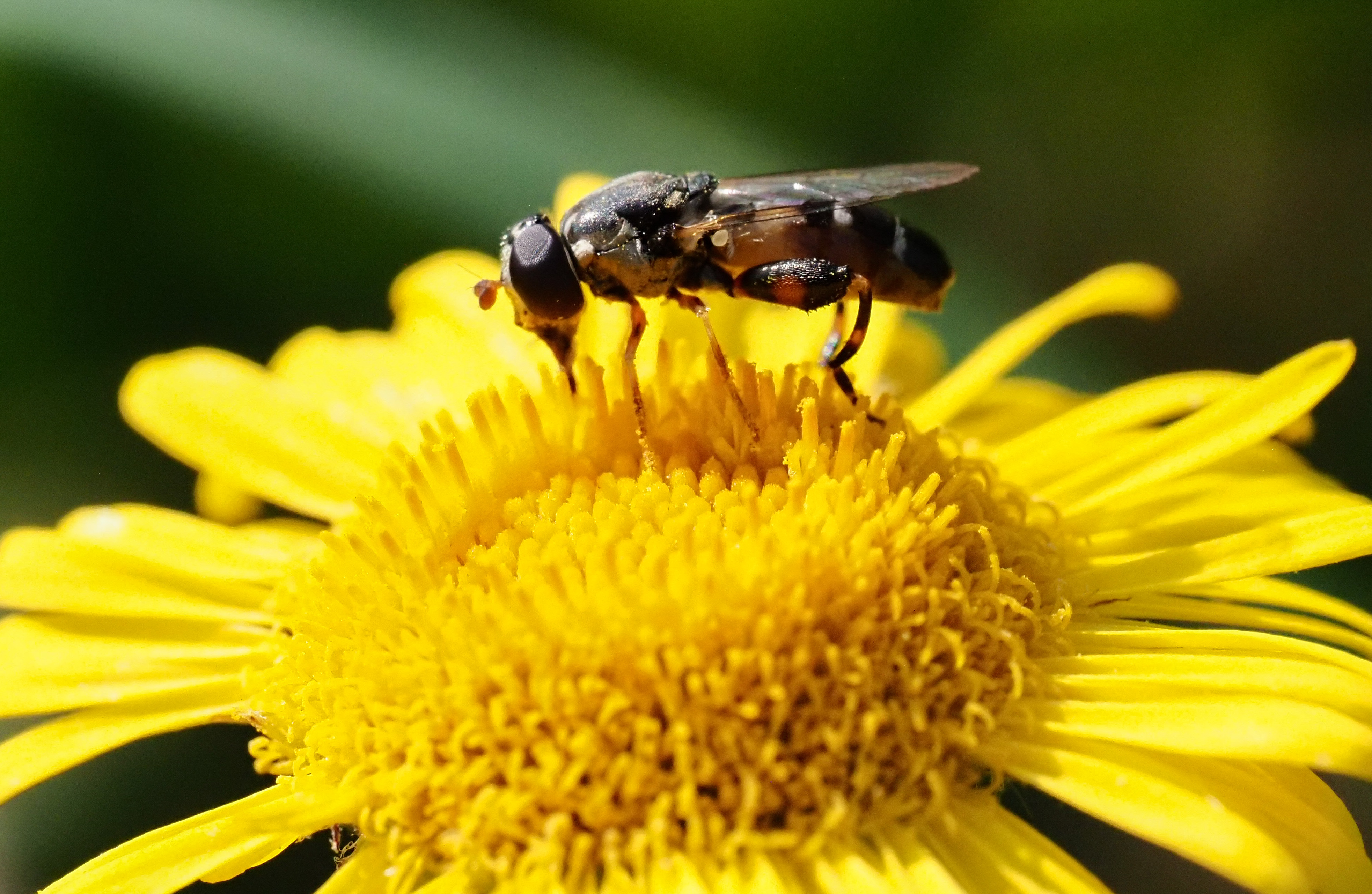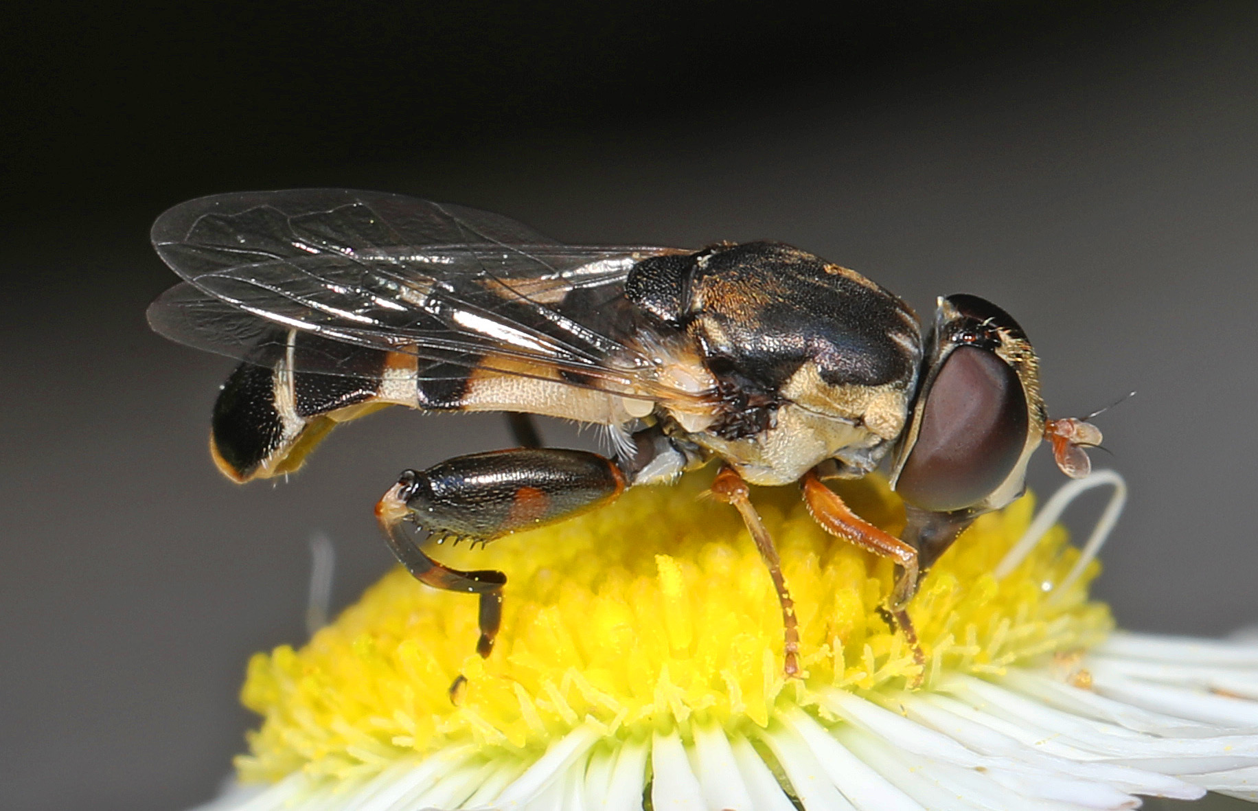 Thick-legged Hoverfly (Syritta pipiens) ‘… showing off its broad spiky thighs’ Flickr CC BY 2.0 Martin Cooper