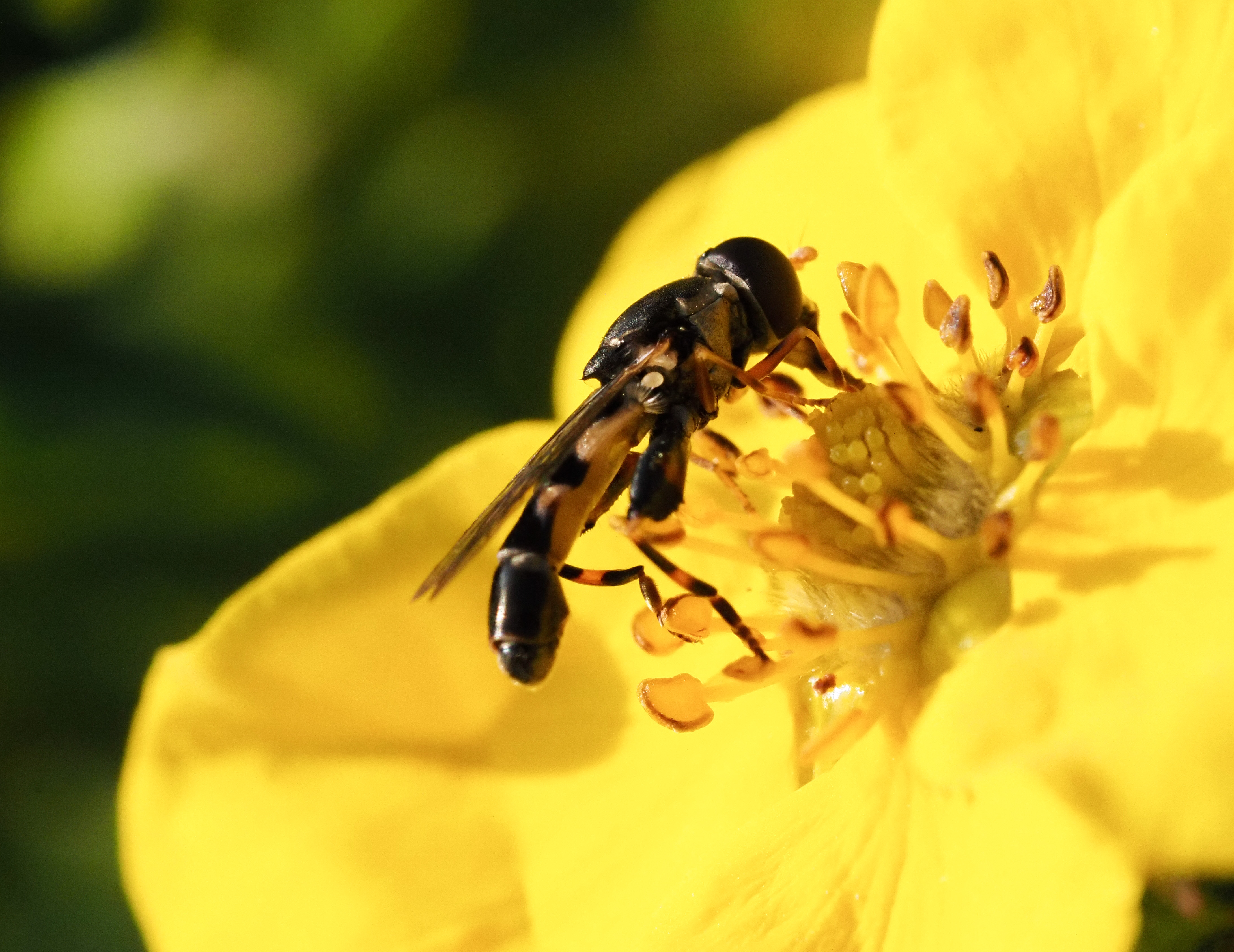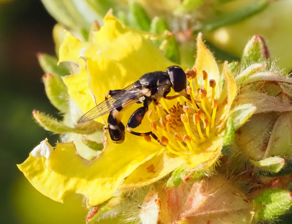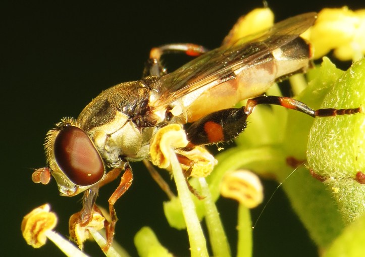1. Wonderful post and photos, Ray. I was wondering if the explanation underlying Syritta’s thickened rear legs is the mimicry that many hoverflies display, the thickened rear legs might increase their resemblance to bees, as many bees have rear legs modified to carry pollen. This is the case also in Eristalis tenax and Merodon equestris, both great bee mimics.