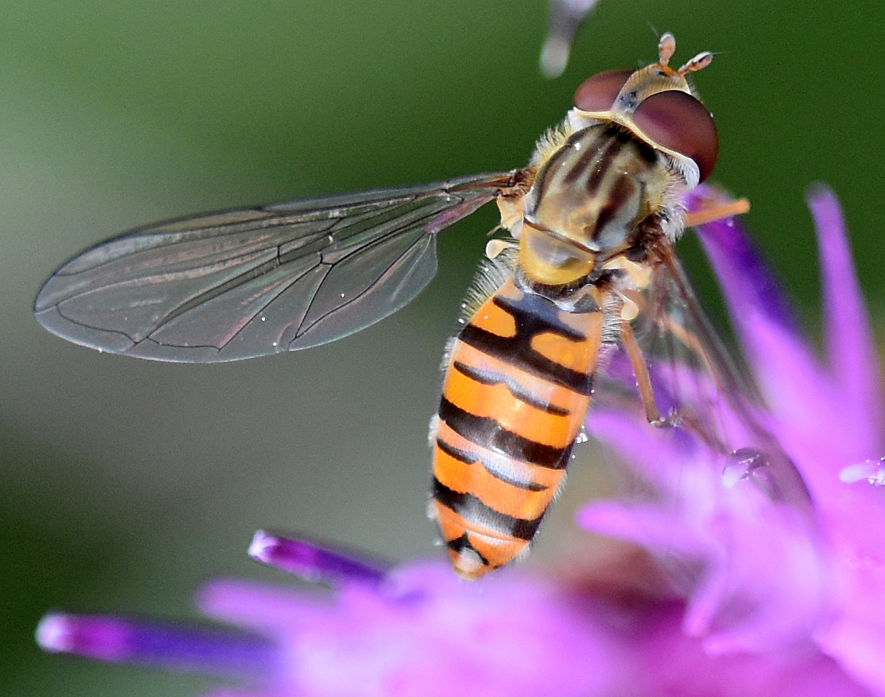 I don’t suppose any birds would take note of such fine detail on the body of a fly! They have to quickly decide – very quickly indeed as hoverflies move fast! – whether the potential prey item is safe to eat or not. They have probably learned to recognise hazardous insects, i.e. wasps, using only one general feature, such as its colour, shape or surface pattern. They do not carefully evaluate all aspects of the insects, but rapidly reject it, or otherwise, based on the one thing that they have learnt, e.g. the colour. So, if the colour of the mimic matches that of the prey, which it clearly does, then that’s a good enough ‘rule of thumb’ for the bird to leave it alone! Which may explain why imperfect mimicry works!