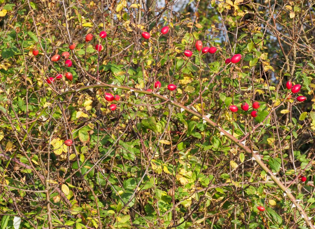 Returning to the autumnal theme, it is lovely to see all the red fruits and berries bejewelling the countryside. Why are so many of them red coloured? Presumably to advertise their presence and availability to birds. They are saying come and eat me, spread my seeds far and wide. And then there is the chemistry of it all: anthocyanins etc. There are also plenty of black and blue fruits as well! See here.
