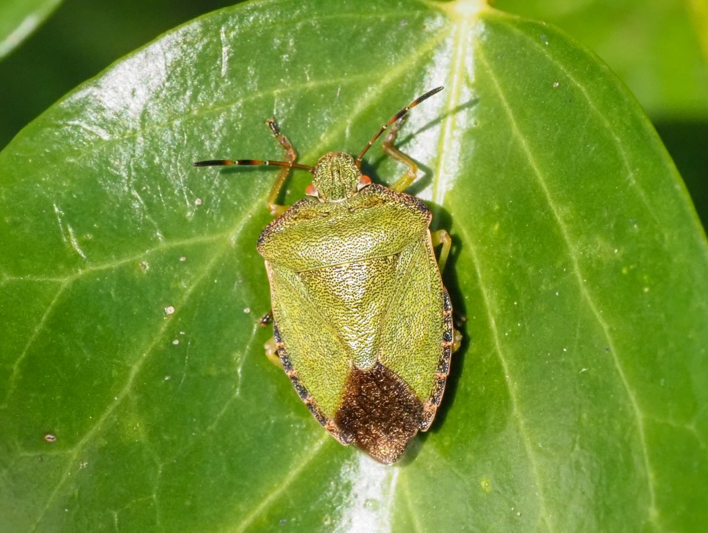I was also delighted to see this beautiful shieldbug sunning itself on an ivy leaf! Not to be confused with the cosmopolitan species, the Southern Green Shieldbug, Nezara viridula.