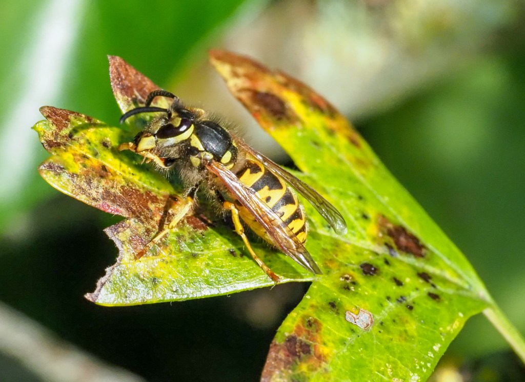 Ivy flowers well into November, and is a good place to find a wide range of insects in the autumn. There were quite a few German wasps (Vespula germanica) feeding on the remaining ivy flowers and then sitting on leaves in the sun, to carefully clean their mandibles and brush the dirt off their antennae. Such fastidious little animals!