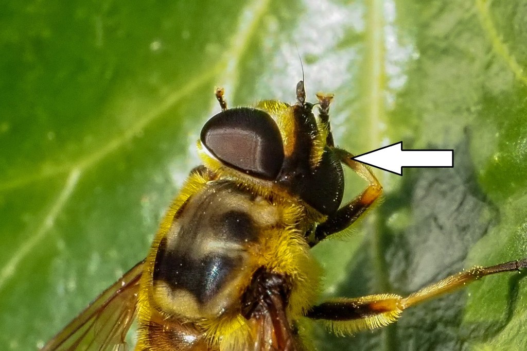 I have, however, divided the Batman hoverfly (Myathropa florea) grooming sequence I photographed into three stages, shown below, starting with the head. Each eye is cleaned by the foreleg (called the ipsilateral leg) on the same side.