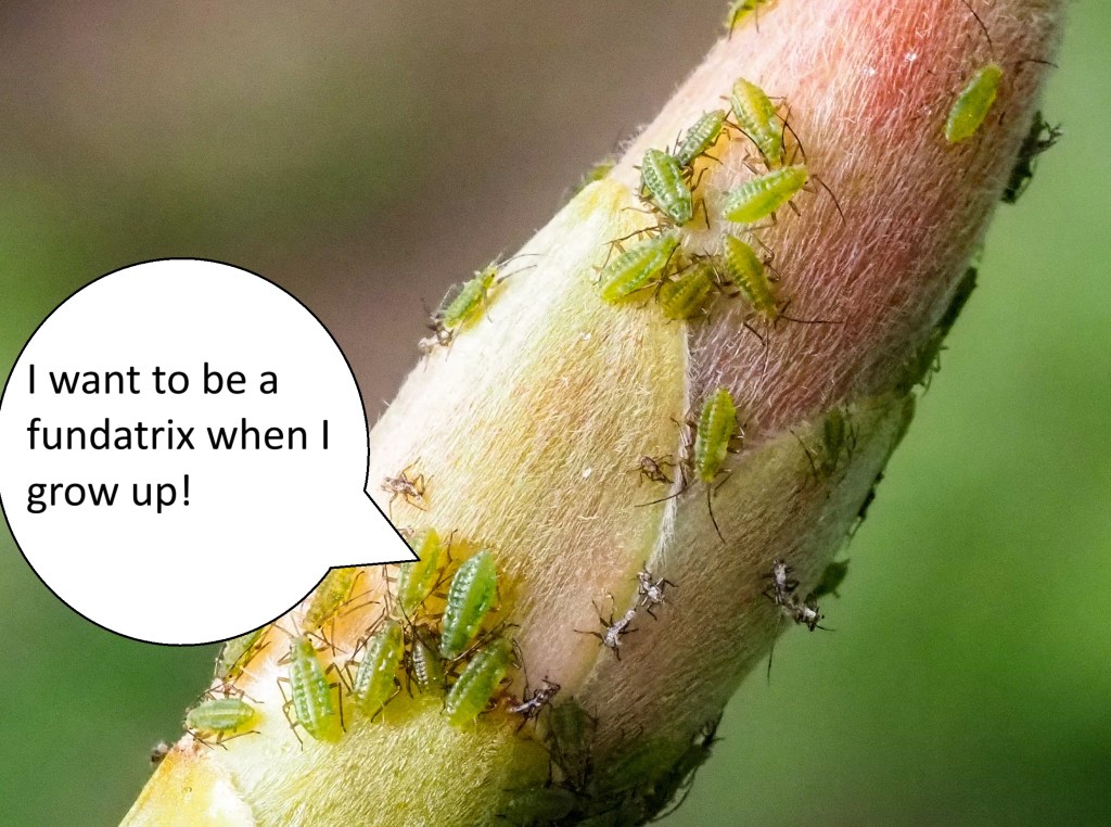These adults then give rise to more nymphs called fundatrigeniaeviviparous parthenogenetic wingless female aphidproduced by a fundatrix – and these in turn give rise to further wingless forms which develop into parthenogenetic virginoparae. Fancy names for three generations of female aphids produced by asexual reproduction. Sex comes later in the year!