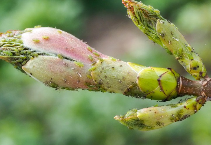 There is much that could be said about aphid phenology, but I’ll finish by saying that the sycamore aphids I photographed here seem to me to have timed their hatching remarkably well. They managed to climb aboard their tasty, nutrient-providing buds just as they were bursting open! Enabling them to build up their colonies just as the trees were waking up and starting to grow again, pumping nutrients into the developing leaves. Long may they continue to do so.