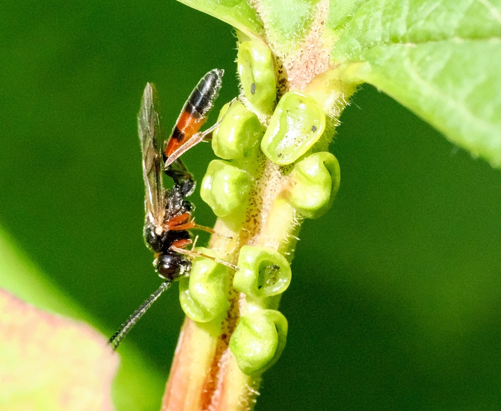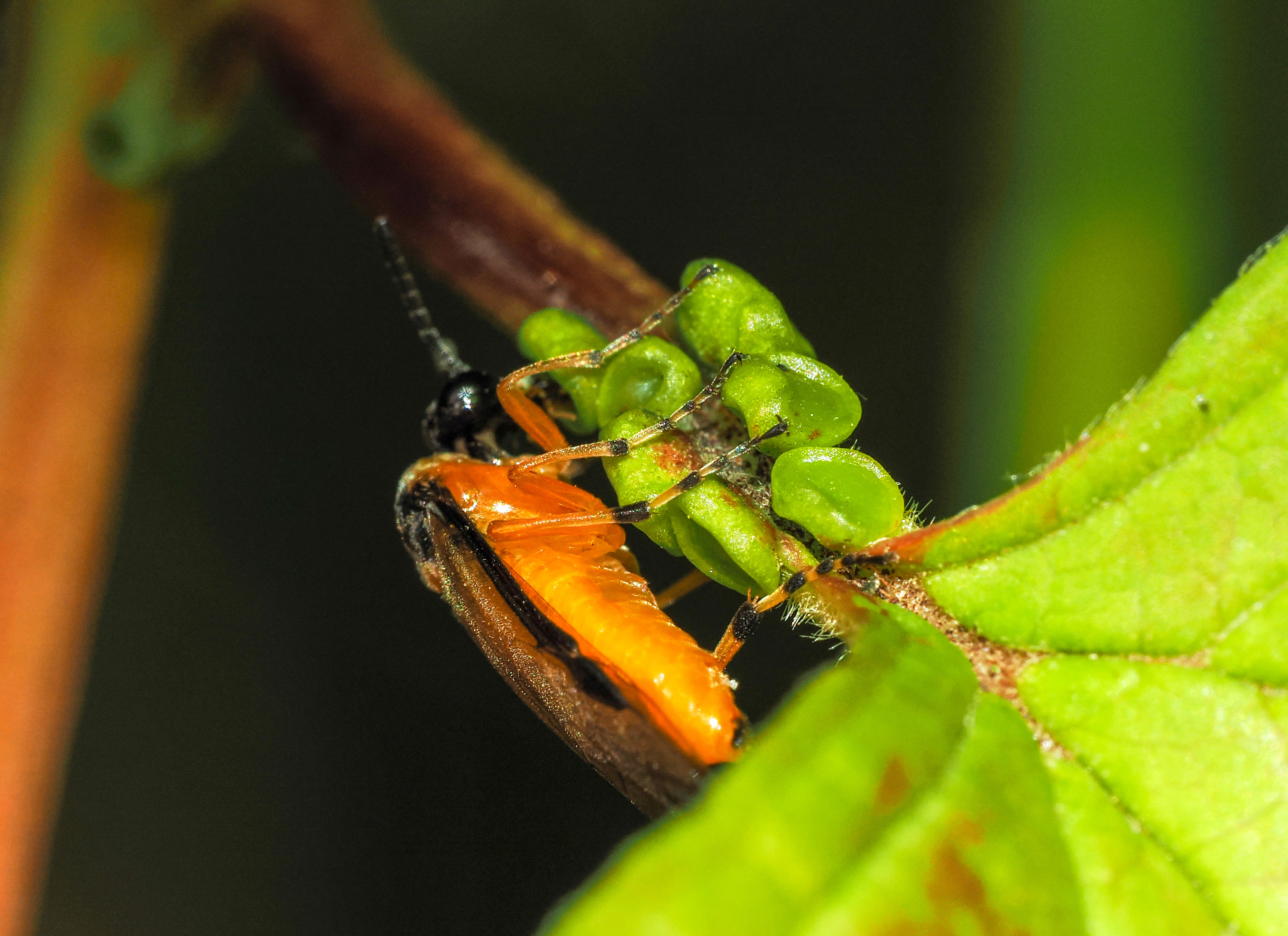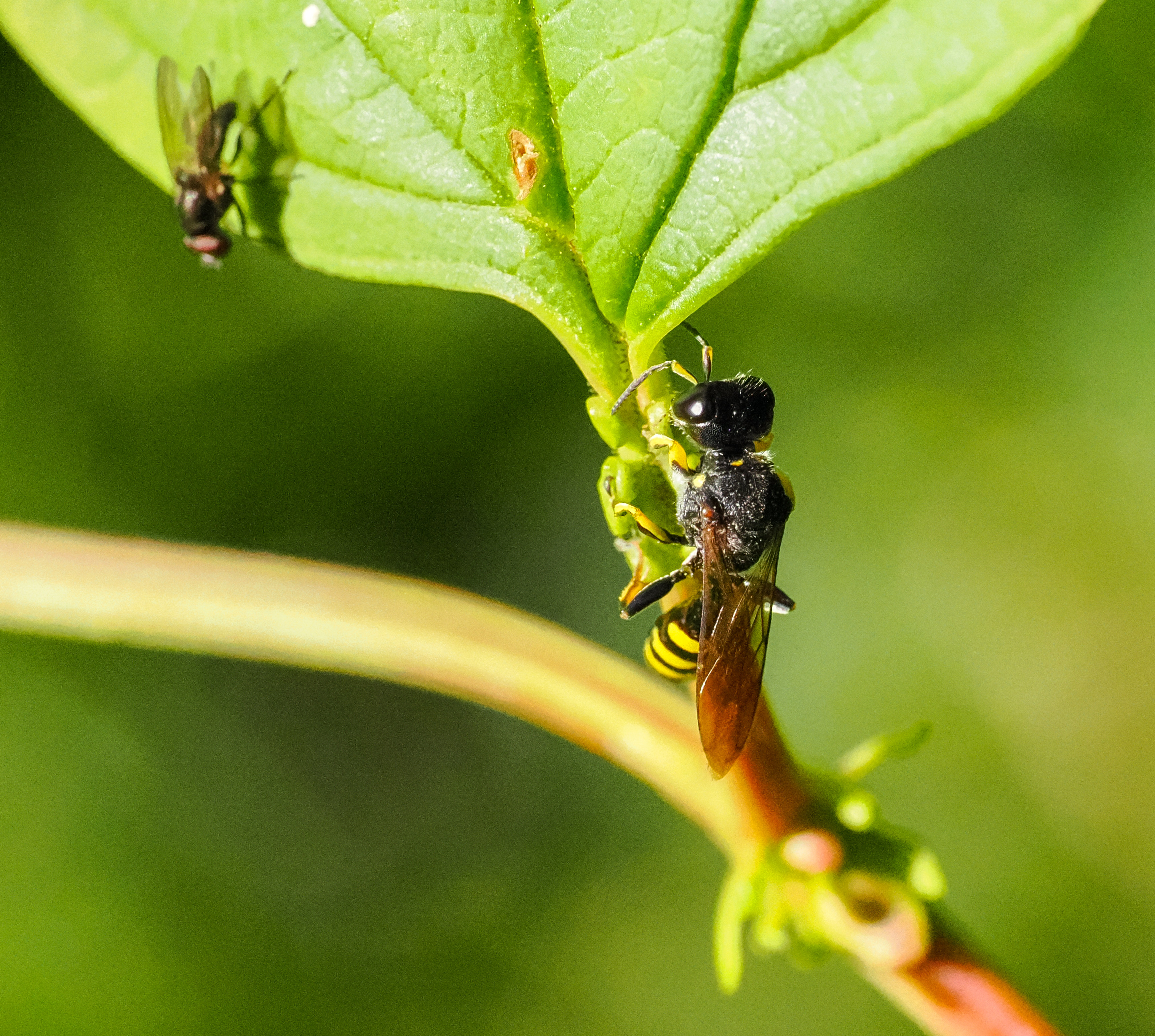 The food source provided for the ants also attracts a host of other insects, including flies, wasps, beetles, sawflies, and probably many others (see below). This is an important ecosystem service, but the benefit to the plants of such largesse is not so obvious, at least to me. Could it be that the evolved mutualism is much broader than usually assumed, and includes ‘services’ provided by other species which benefit the plant in more subtle ways?