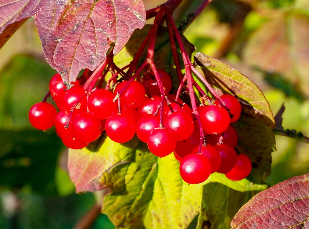 Guelder rose (Viburnum opulus) is a deciduous shrub which can grow up to 4 m tall and is covered in bright red berries at this time of year (August).