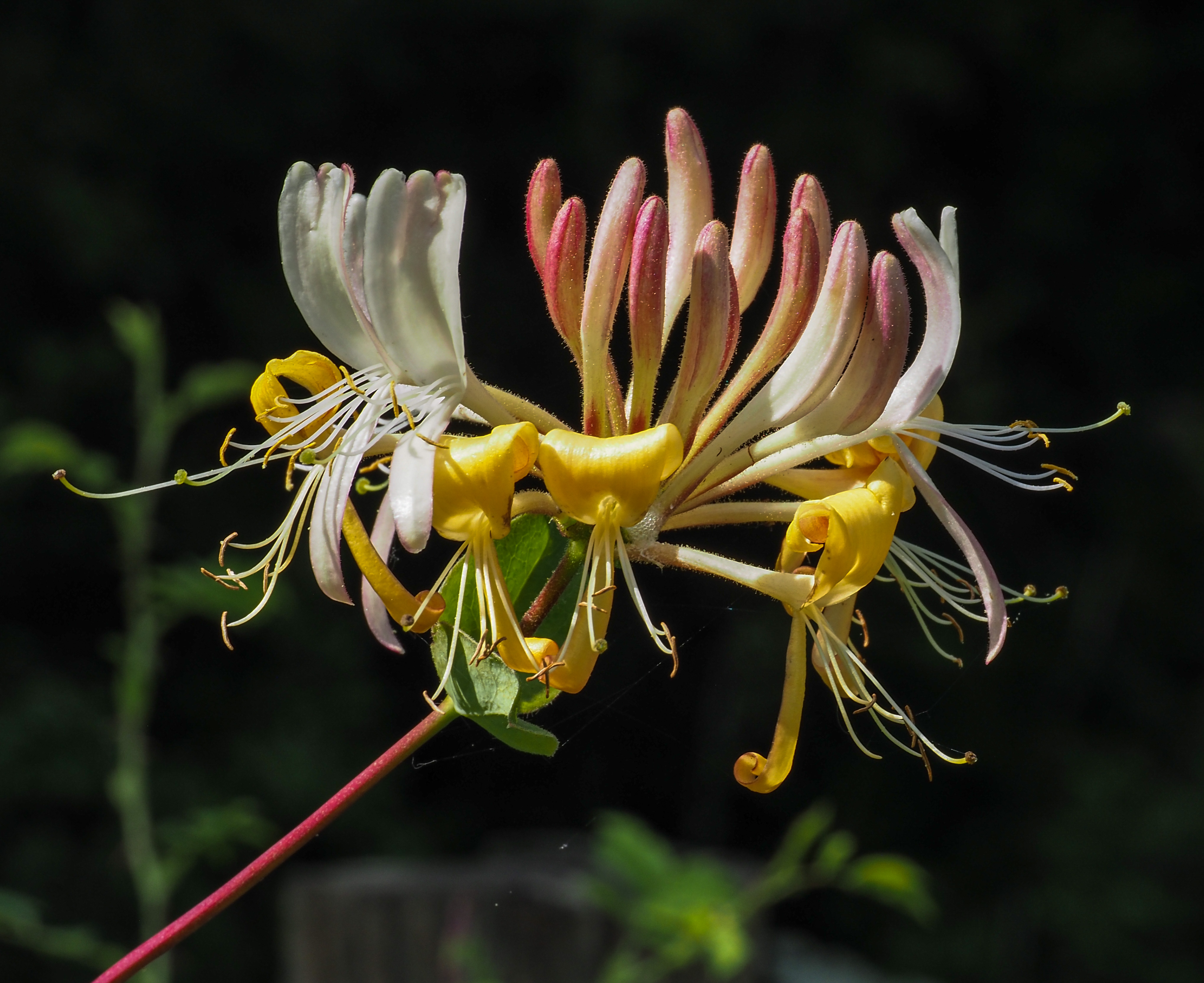 Honeysuckle flowers (L. periclymenum) remain open in the evening and are frequently visited by hawkmoths. They have a strong preference for flowers with a long corolla tube and probe the flower with the tip of their proboscis while hovering in front of it.