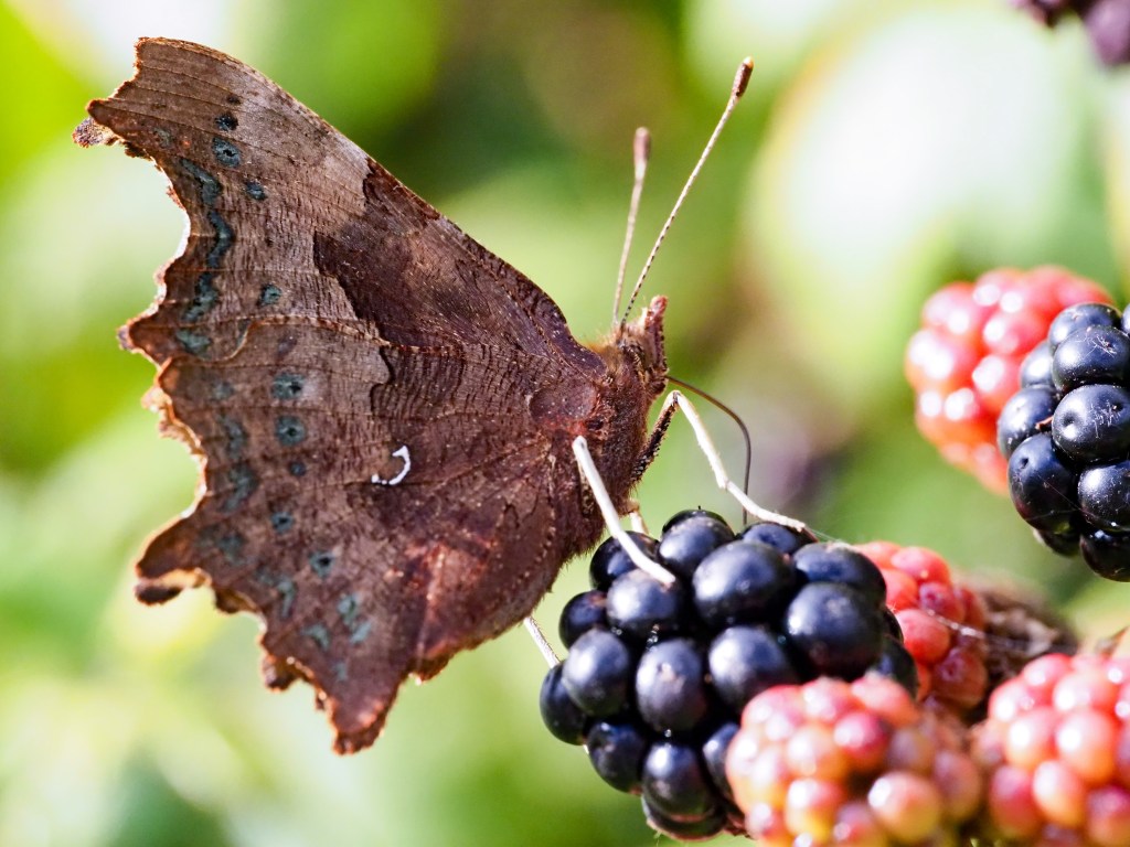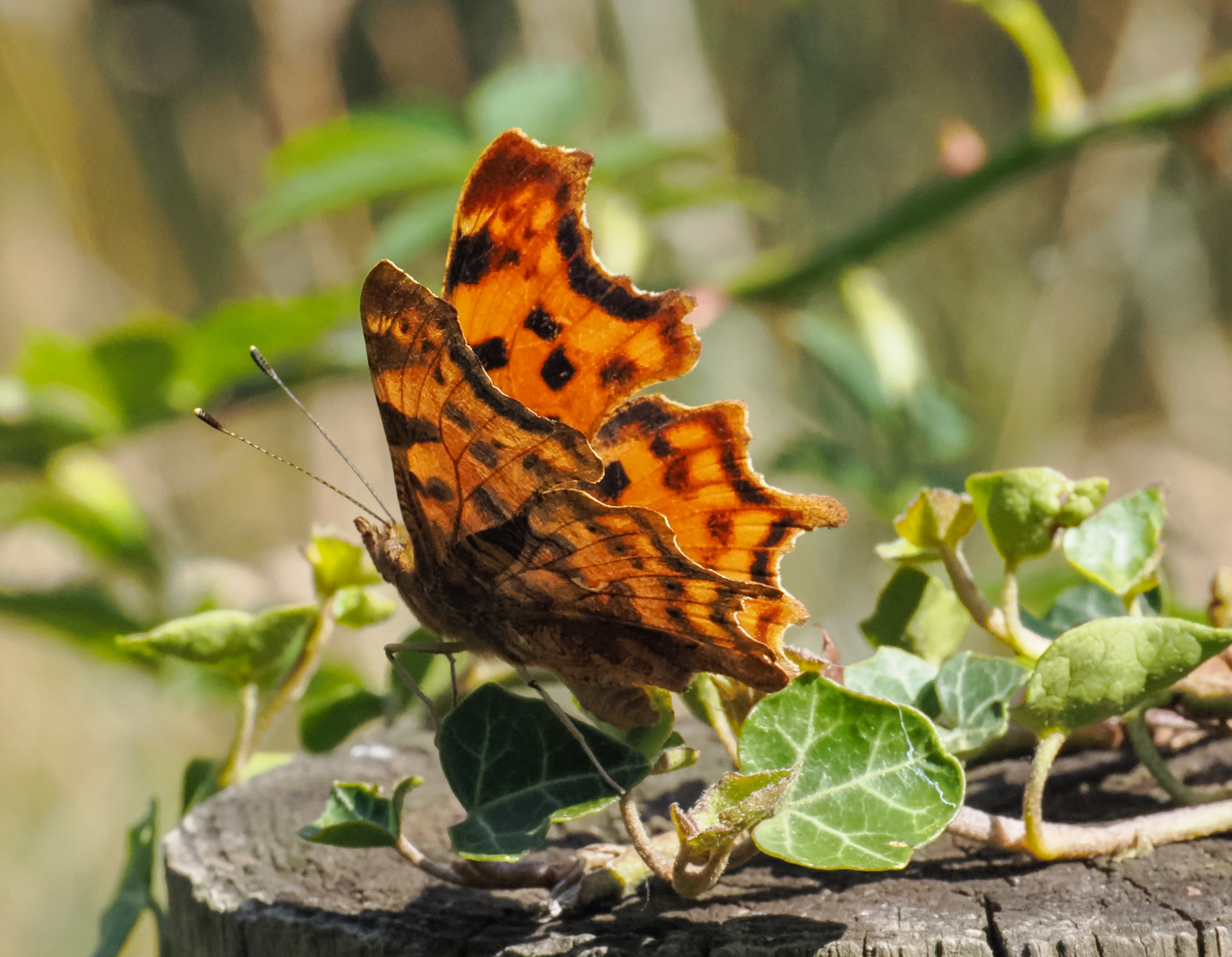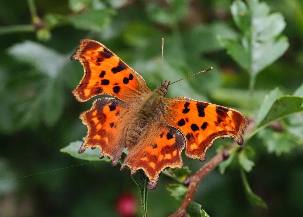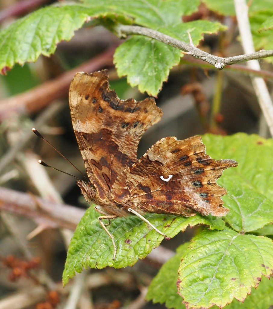 The function of the white comma makings have been much discussed, including the idea that it looks very much like a bird dropping. My own favourite theory is that commas work as distractive markings; i.e. highly noticeable features, which draws the attention of would-be predators, like birds, away from the rest of the butterfly. Discussed in a previous blog: Distractive markings on lepidopteran wings.