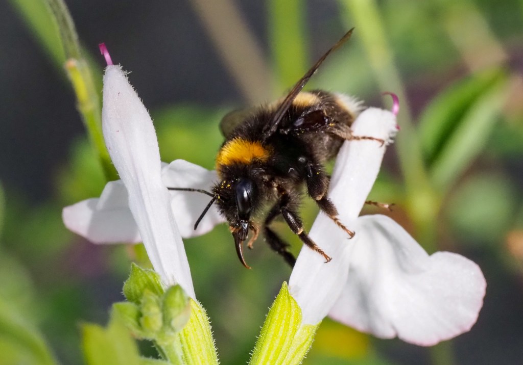 - Tree Bumblebee (Bombus hypnorum) – Short (approx. 6 mm). A common, relatively new arrival that often visits open, easy-to-access flowers.
