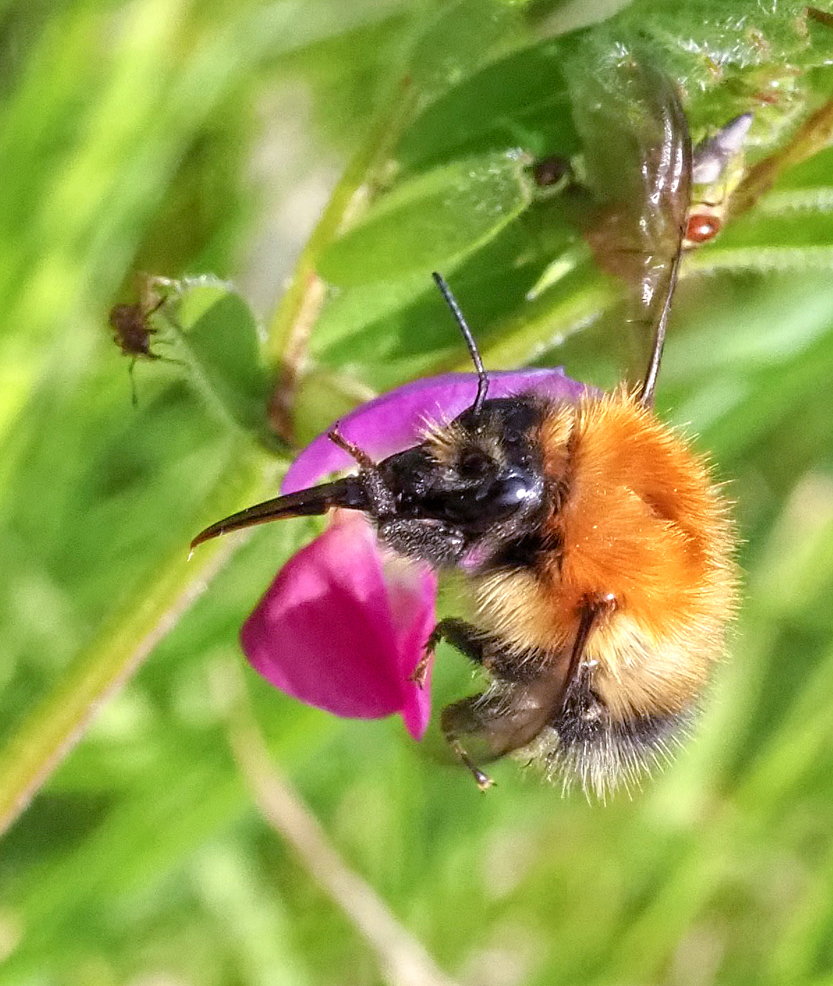 - Red-tailed Bumblebee (Bombus lapidarius) – Approx. 6.0 mm. A shorter tongue, forcing them to prefer more open flowers or to rob nectar from deeper ones.